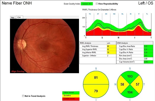 Επί του παρόντος η πιο σύγχρονη και η πιο ευαίσθητη ειδική εξέταση για τη διάγνωση και παρακολούθηση του Γλαυκώματος είναι η Οπτική Τομογραφία υψηλής ανάλυσης. Μέσα σε λίγα δευτερόλεπτα γίνεται 3-D απεικόνιση του οπτικού νεύρου και των Γαγγλιακών Ινών χωρίς ένεση κάποιας ουσίας και χωρίς διαστολή της κόρης (μυδρίαση). Η Οπτική Τομογραφία διαφαίνεται χρήσιμη στην παρακολούθηση και άλλων εκφυλιστικών νευρολογικών παθήσεων, όπως η Πολλαπλή Σκλήρυνση και το πρόωρο Alzheimer.